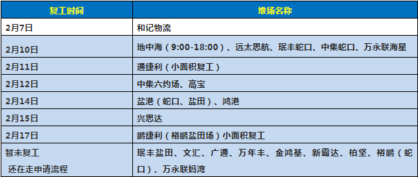 深圳港的各大主要堆場(chǎng)的詳細(xì)開工情況匯總: